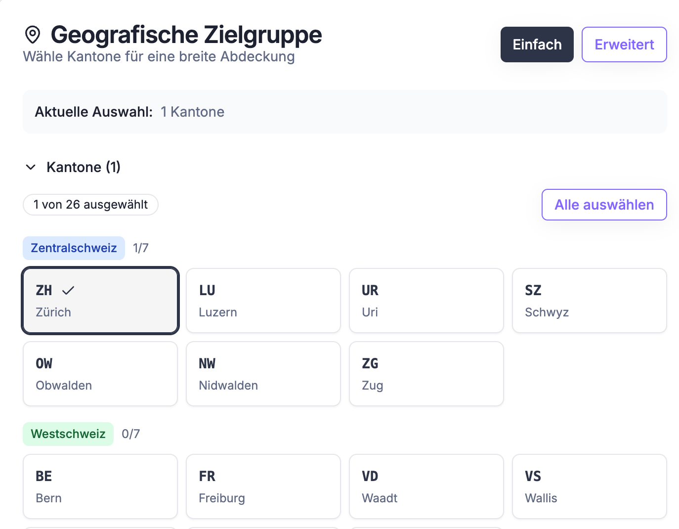 Segmentieren Sie Neugründungen präzise nach Branche, Kanton, Rechtsform und Gründungsdatum. Dadurch erreichen Sie genau die Unternehmen, die für Ihre B2B-Akquise relevant sind – mit minimalem Streuverlust.